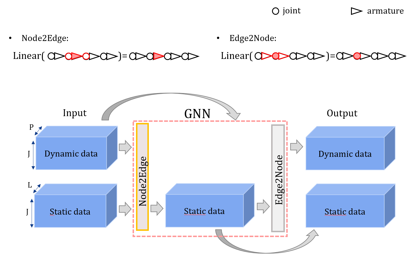 We present here early results and visulise them in Fig. 7. We measure the average retargeting prediction error on the test set using the two methods described above, and compare them with two simple baselines consisting respectively in copying the source joint positions, and copying the source joint orientations (and computing the joint positions using the target skeleton bone lengths). The results are displayed in Tab. 2.