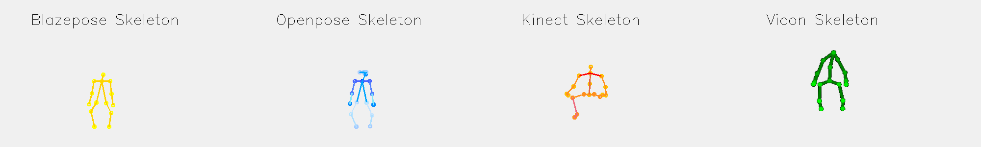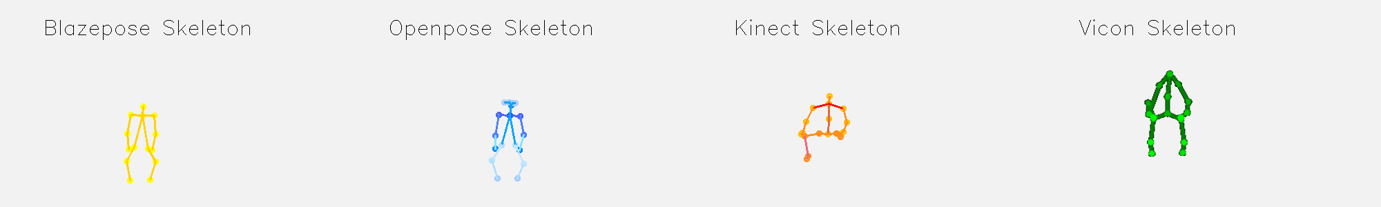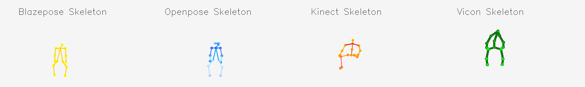 Figure 2: Visulisation of Movement side stretch detected by Blazepose, Openpose, Kinect and Vicon